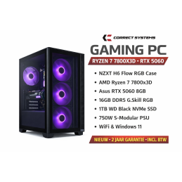 Correct Systems – High-End Gaming Build ✔️ NZXT H6 FLOW RGB – Premium behuizing met panoramisch glas✔️ Asus TUF Gaming B650-Plus WiFi moederbord✔️ AMD Ryzen 7 7800X3D – 8 cores / 4.20 GHz – ultieme gaming CPU✔️ G.Skill DDR5 Trident Z Neo RGB – 32GB (2×16GB) – 6000 MHz✔️ NZXT Kraken 360 RGB – AIO waterkoeling zwart✔️ Gigabyte GeForce RTX 5080 Windforce OC...