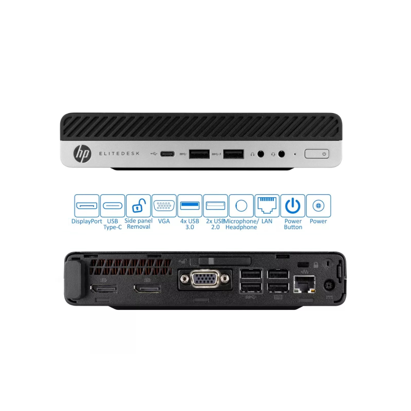 HP Prodesk 400 G2 mini  Intel Core | i5-6500T (max. 3.1GHz)  8GB DDR4  SDRAM werkgeheugen  128GB SSD NVMe PCI-e opslagcapaciteit  Windows 10  64bits  4x USB-3.2, 2x USB-2.0, 1x DP, 1X VGA, 1x audio uit,  1x LAN poort  Gewicht: 1.25 KG  Refurbisched  (A grade)
