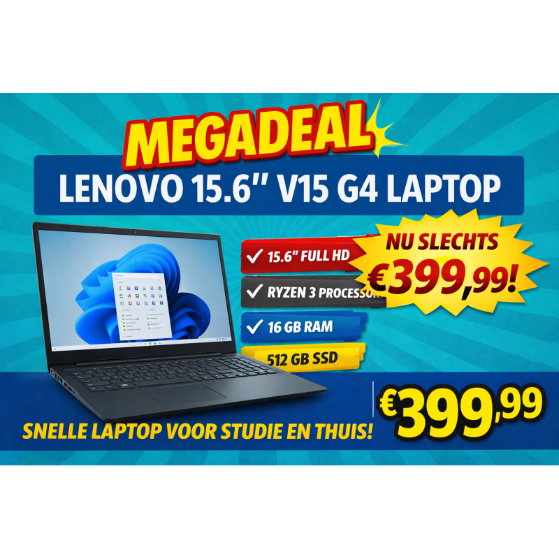 Deze Lenovo V15 G4 is de ideale laptop voor dagelijks gebruik, werk, studie en thuisgebruik. Dankzij de combinatie van een AMD Ryzen 3-processor, 16 GB werkgeheugen en een snelle 512 GB SSD werk je soepel en zonder vertraging.